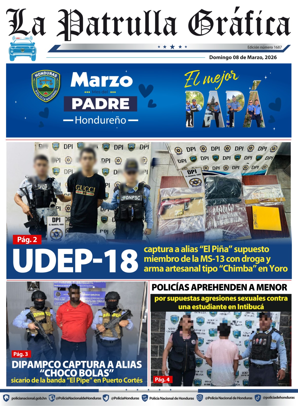 Redes Sociales Mar, Dom, 2026 LA PATRULLA GRAFICA UDEP-18 CAPTURA A ALIAS “EL PIÑA” SUPUESTO MIEMBRO DE LA MS-13 CON DROGA Y ARMA ARTESANAL TIPO “CHIMBA” EN YORO DOMINGO 08 DE MARZO 2026 – LA PATRULLA GRAFICADescarga Comentarios 0