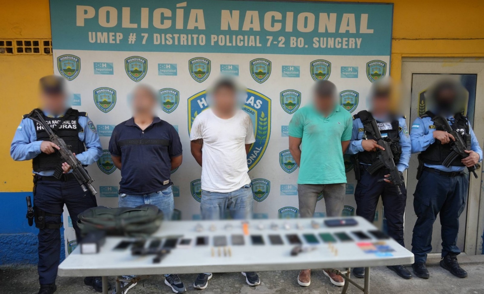 Los ahora arrestados fueron identificados como un hombre de 38 años, originario de Sulaco, Yoro y residente en la colonia Satélite; un sujeto de 35 años, originario de San Pedro Sula, Cortés y residente en El Progreso, Yoro; y un individuo de 32 años, originario y residente en San Pedro Sula, Cortés.